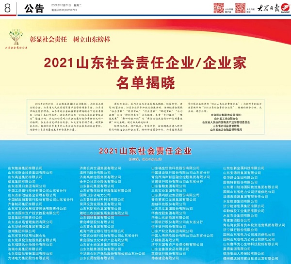 濰坊農(nóng)創(chuàng)集團榮獲“2021山東社會責(zé)任企業(yè)”稱號